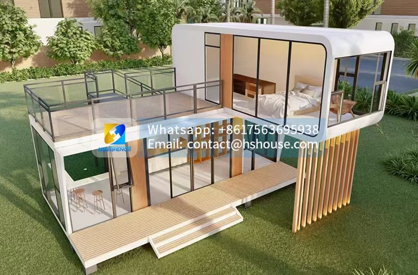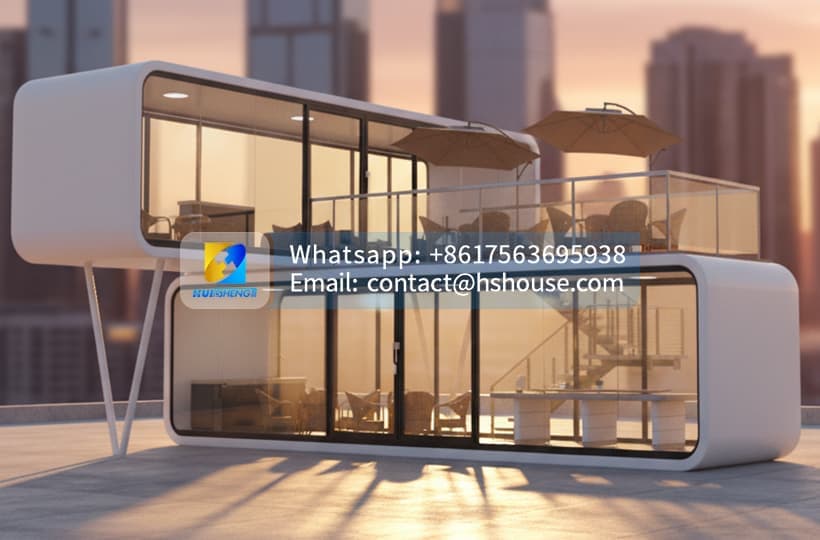 As an advanced apple cabin container house and space capsule house, the double-storey design combines the strength of steel frame prefabricated cabin houses, the efficiency of container cabin houses, and the modern aesthetics of luxury capsule houses. It is especially suitable for hotel capsule house projects, resort prefab cabins, glamping cabin houses, and urban or scenic area developments where vertical space is critical.