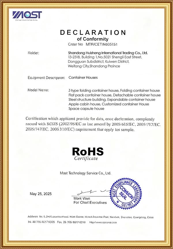 Founded in 2013, Shandong Huisheng International Trade Co., Ltd. is one of China's leading manufacturers of modular buildings and container housing systems. We specialize in apple-shaped cabin houses, customized container houses, demountable container houses, expandable container houses, folding container houses, space capsule houses, K-type prefabricated houses, and steel structure buildings, encompassing R&D, design, production, sales, and overall solution services. We provide global clients with one-stop modular building products.